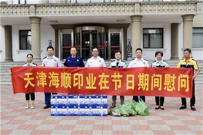 天津海顺印业包装有限公司为炎炎夏日依然默默坚守在岗位的消防官兵送上了慰问品,表达我们深深地敬意。同时向他们致以节日的问候,感谢他们长期兢兢业业、恪尽职守的巡查,有力地保护了企业 的生命财产安全,为企业的安全保驾护航!