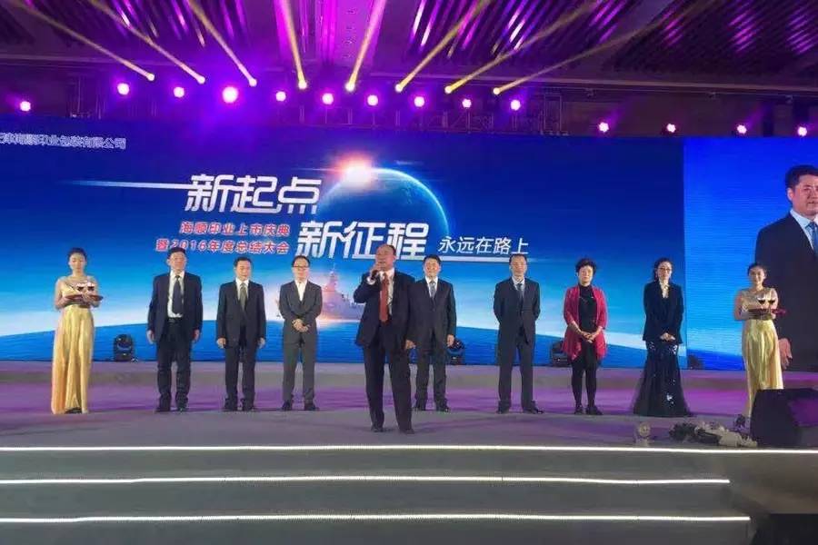 董事长袁汝海率领全体高管向全体员工表达最诚挚的谢意,并激励大家,站在成功上市的新起点,海顺印业全体同仁应团结共进,众志成城,迈向新征程,勇攀新高峰!