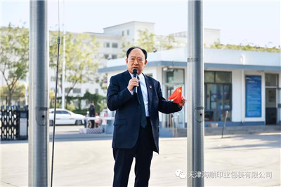 蓝天丽日,秋风送爽。海顺印业为隆重庆祝中华人民共和国成立70周年,10月8日早上7:40,公司在办公楼前广场举行了隆重升国旗仪式,公司领导及来自各岗位的职工近千人参加了活动。迎着绚丽灿烂的阳光,公司全体干部职工精神抖擞,排列成行,鲜艳的五星红旗在全体人员高唱的国歌声中缓缓升起。