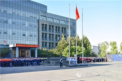公司党支部书记袁汝海在国旗下进行了重要讲话,祝福新中国成立70周年,70载风雨兼程,70载波澜壮阔,70载激情满怀,我们全体海顺人要铭记历史,不忘初心,艰苦奋斗,面对未来,面对挑战,奋勇向前,发展海顺事业,为实现中华民族伟大复兴贡献力量!