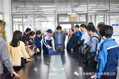金秋十月,碧空如洗,凉爽舒适。10月31日,外语教学与研究出版社(以下简称:外研社)印制部主任郑志业、材料部副主任侯英子一行15位老师莅临海顺参观指导工作。在天津海顺印业包装有限公司党支部书记袁汝海等人员陪同下重点参观了普通书刊和精装书刊印制流程,还特别参观了新品开发部、员工食堂和员工活动中心。