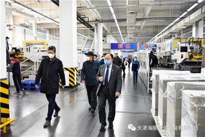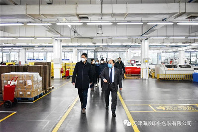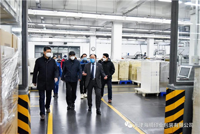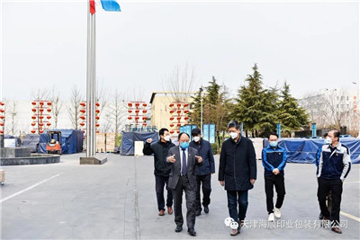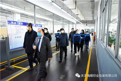 2020年2月27日,正值复工复产之际,天津出版传媒集团有限公司副总经理张云峰,党委常委、纪委书记张云鹏一行领导莅临天津海顺印业包装有限公司(以下简称“海顺印业”)检查疫情防控情况。