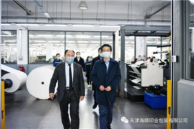 春回大地,阳光暖暖。3月12日,天津市南开区区长孙剑楠,政府办公室主任孟庆国一行莅临天津海顺印业包装有限公司(以下简称“海顺”)指导工作。