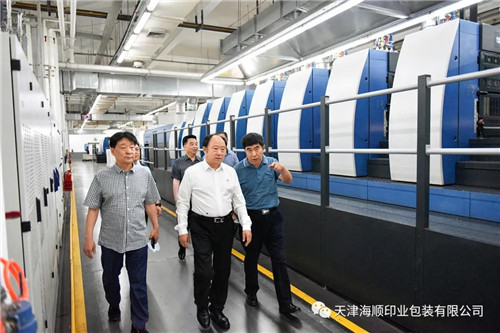 随后,一行人进行了座谈。袁书记首先发言,欢迎河北印协各位领导莅临指导,协会与协会之间就应加强沟通与交流,共同为印刷行业发展做贡献。袁书记简述了天津印协近两年工作成果与业绩。袁书记强调,协会作为政府与企业间的桥梁,应充分发挥作用,为企业和政府做好服务工作!我们之间应紧密联系,相互促进,协同发展。同时,海顺印业的大门随时为你们敞开,同行不是冤家,理应相互借鉴,共同成长。海顺印业正在打造以信息数据为核心,实现软件系统连接自动化印刷设备、自动化立体仓储、智能物流、机器人应用;实现生产全流程、全业务的自动化、智能化。