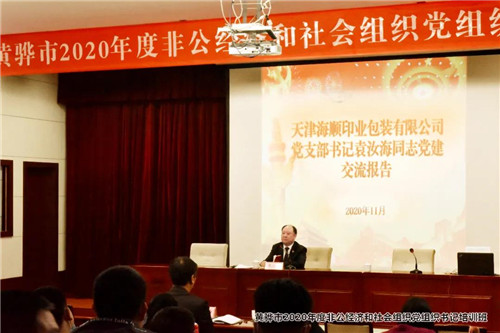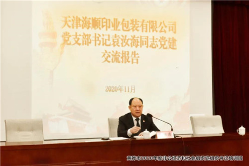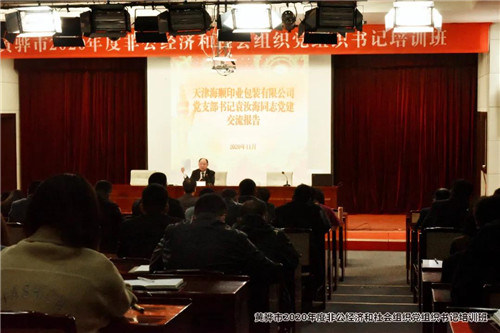 初冬时节,艳阳高照,金黄色的树叶洒满人间大地。11月4日早上,天津海顺印业包装有限公司党支部书记袁汝海受黄骅市委组织部邀请来到美丽的渤海湾黄骅市,为黄骅市“两新”党组织书记、部分非公企业总经理等近300人讲党课。他结合企业自身发展和自身经历以听党话,跟党走,幸福是奋斗出来的为主题,为黄骅市“两新”党组织书记培训班上了一堂生动的党课。