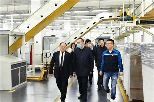 海顺党支部书记袁汝海和总经理李冠达等高层领导陪同区政协区政府一行人参观了生产车间,袁书记向参观的各位领导详细地讲解了车间的生产情况、立体库建设规划及未来智能制造发展方向。