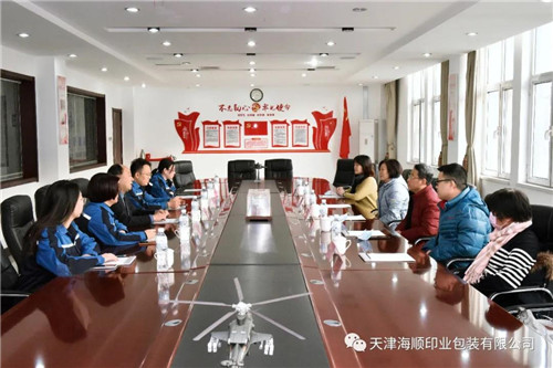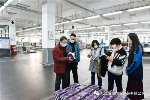 12月2日,天津大学出版社(以下简称“天大出版”)党总支书记、总编宋雪峰,财务总监邱玉玲,出版部主任杨瑜,出版部刘浩老师,美编谷英卉等一行莅临天津海顺印业包装有限公司(以下简称“海顺”)参观考察。