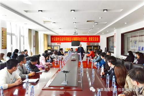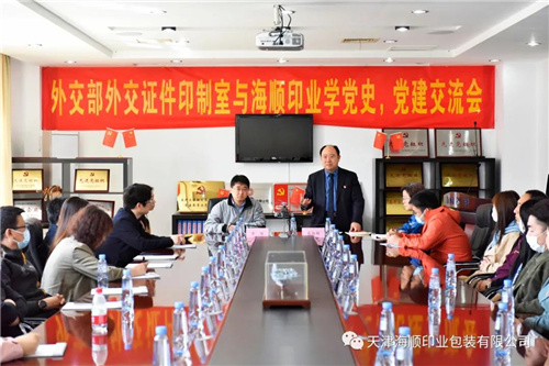 微风习习,阳光明媚,花香四溢,人间美好四月天。4月14日,外交部机关及驻外机构服务中心主任助理李勇,服务中心机关事务综合服务处处长托娅,服务中心机关事务综合服务处副处长田皓铭等党员代表、科领导及业务骨干一行莅临天津海顺印业包装有限公司(以下简称“海顺”)参观,开展党建交流。