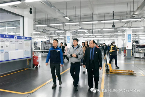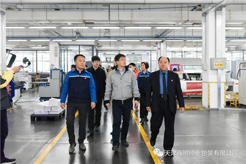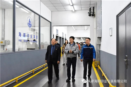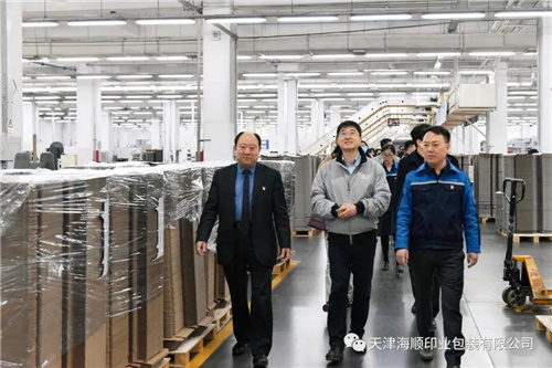 海顺书记袁汝海、总经理李冠达等海顺高层领导陪同一行人参观了生产车间。李勇助理一路边走、边看、边问,打开贵宾通道的大门,映入眼帘的就是干净整洁明亮的车间,先进的国际化印刷机整齐排列,让人震撼!印后的各个车间都配备了专业化的印后配置,分工明确,井然有序;海顺在16年前,就用站在未来规划今天的前瞻眼光谋篇布局,走在行业前列,坚持智能制造,不仅减轻了工人的劳动强度,还提高了工作效率,还为工人创造了良好的工作环境,能够感受到大家在海顺工作是幸福的!同时,还参观了海顺的食堂、员工活动中心、员工的集体宿舍、单元楼,还询问了海顺生产情况及未来发展规划等问题,海顺袁汝海书记都一一做了详细地回答。