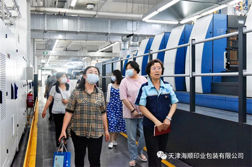 海顺副总徐英陪同丽泽小学的党员及骨干教师参观了生产车间,徐英副总对生产的每个环节都进行了详细的讲解。丽泽小学一行人带着对现代化印刷包装企业的的好奇心走进海顺生产车间,干净明亮整洁的车间环境、先进的国际化印刷设备映入大家的眼帘,打破了大家对印刷包装企业的固有认识,更让大家感受到了海顺以人为本的家文化。同时,大家还详细地了解了书刊的制作过程。海顺作为国家印刷智能制造示范企业,将以信息数据为核心,实现软件系统连接自动化印刷设备、自动化立体仓储、智能物流、机器人应用;实现生产全流程、全业务的自动化、智能化。