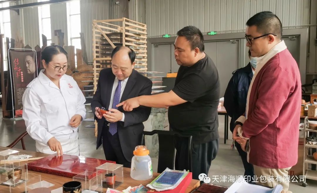 袁汝海书记到荣程集团洽谈协商文创产业的包装项目,充分展示了海顺对荣程集团发展的关注,热心公益事业,履行社会责任,推广非遗品牌,创新创造,精益求精,为推动国家非遗贡献海顺力量。