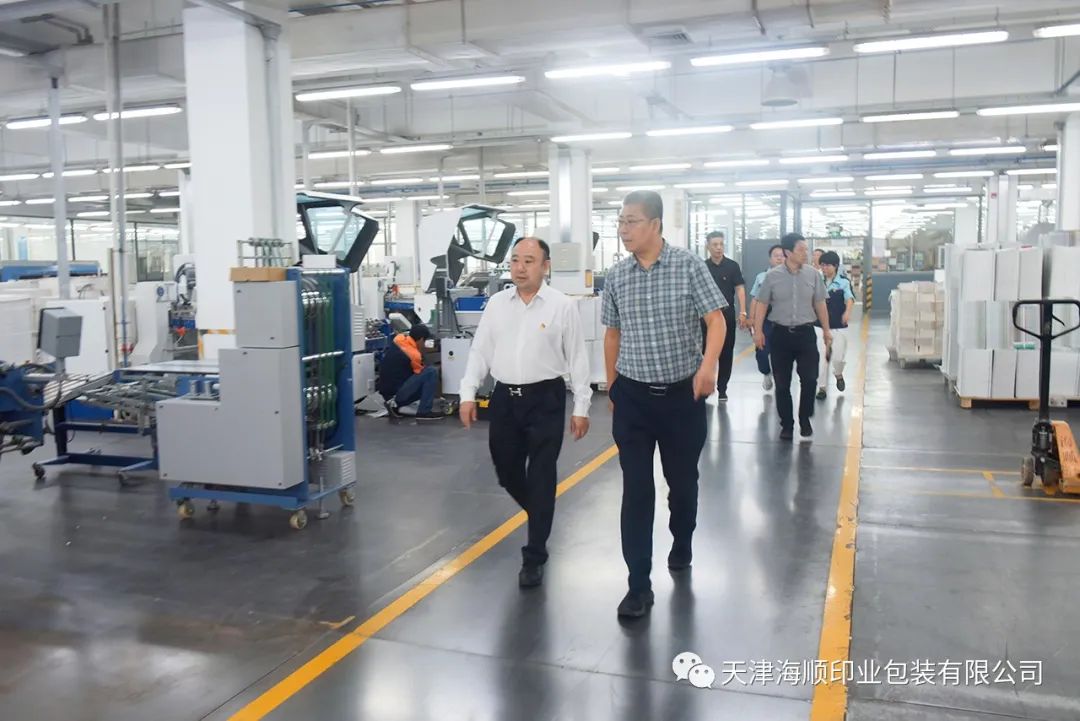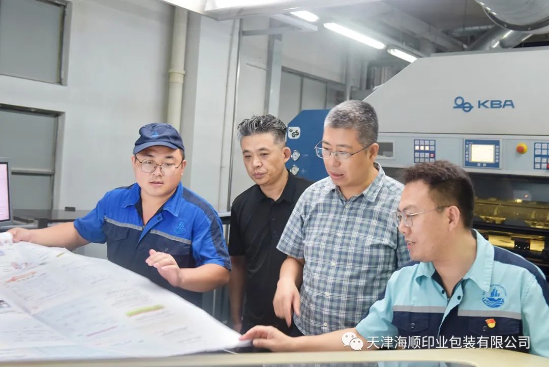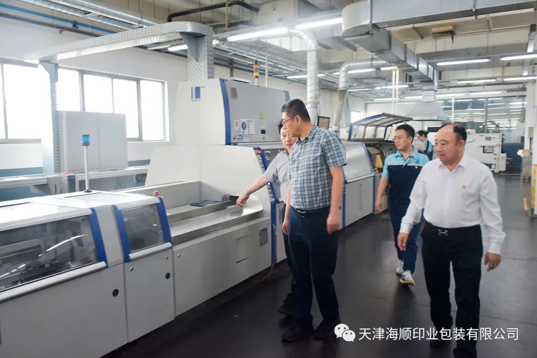 末伏时节,天气晴朗炎热。2023年8月15日,天津出版传媒集团副总经理张云峰,董事会办公室主任魏伟等领导一行莅临天津海顺印业包装有限公司检查学生教材印质情况。